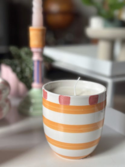 Elke kaars is zorgvuldig met de hand gegoten dus soms zijn kleine oneffenheden normaal, zoals witte vlekjes.
